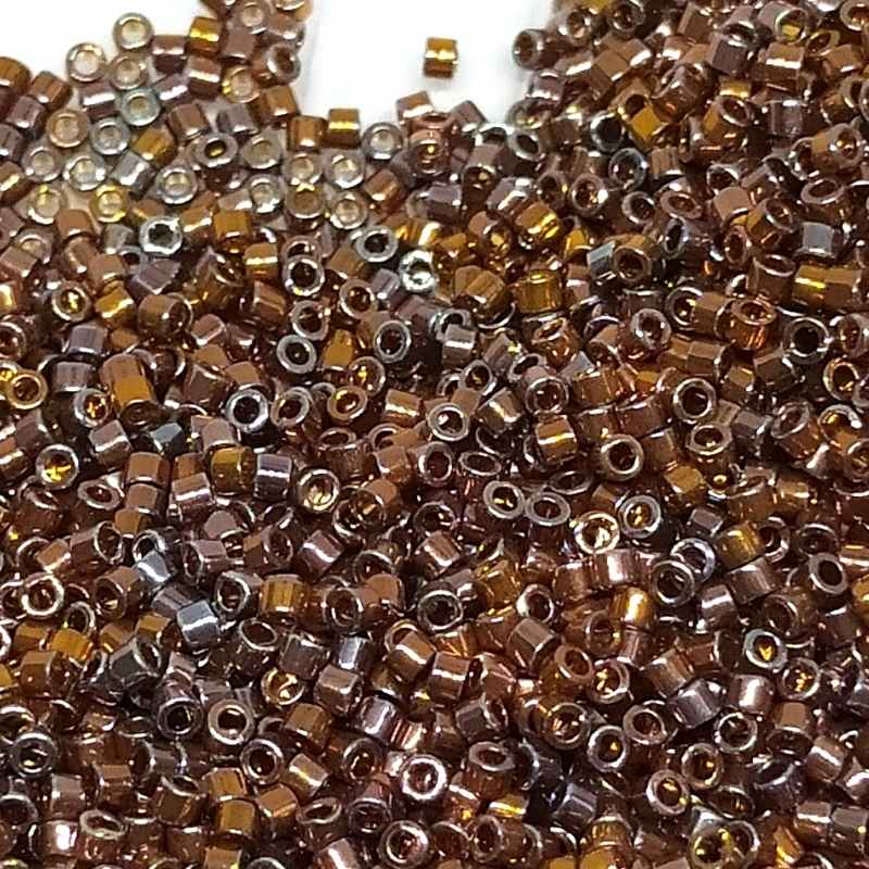 Miyuki Delica beads in size 11/0 color: 24 kt. Red Gold Iris