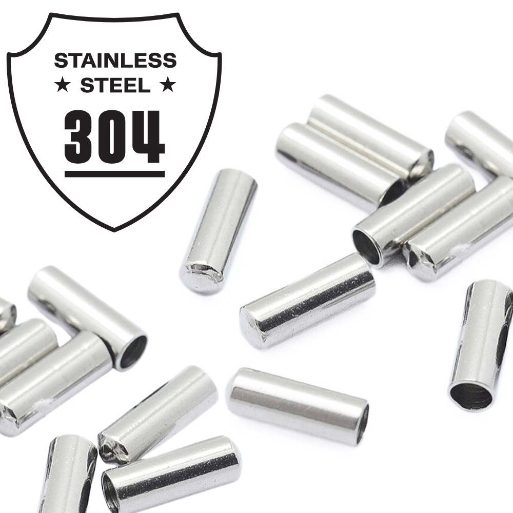Terminales para cordón fabricados en acero inoxidable 304, resistentes al deslustre y al paso del tiempo. Su forma cilíndrica es ideal para finalizar pulseras, collares o colgantes de forma profesional y segura.