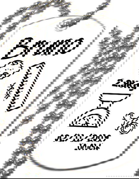 ¿Te gusta esta plantilla para hacerte un chapa personalizada en collar? Ahora simplemente deberás indicar los datos del texto que quieres grabar y así podrás crear tu collar personalizado.